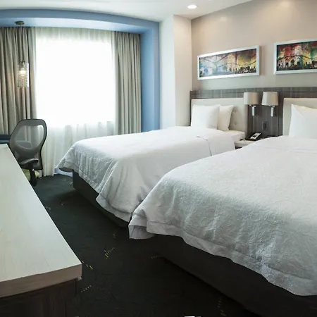 The Hampton Inn & Suites offers rooms with a seating area featuring an iron with ironing board and air conditioning, along with a flat-screen TV with satellite channels and a radio. They are appointed with a writing desk, and also feature coffee/tea making facilities.